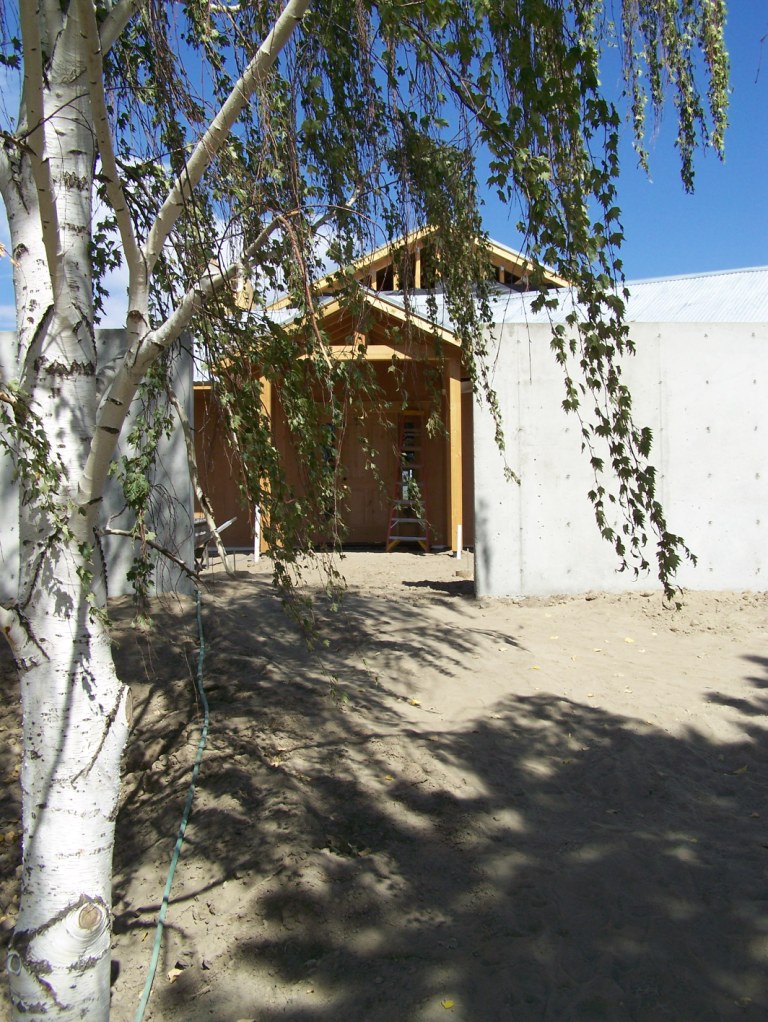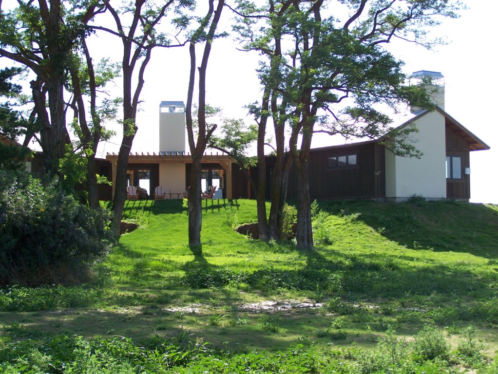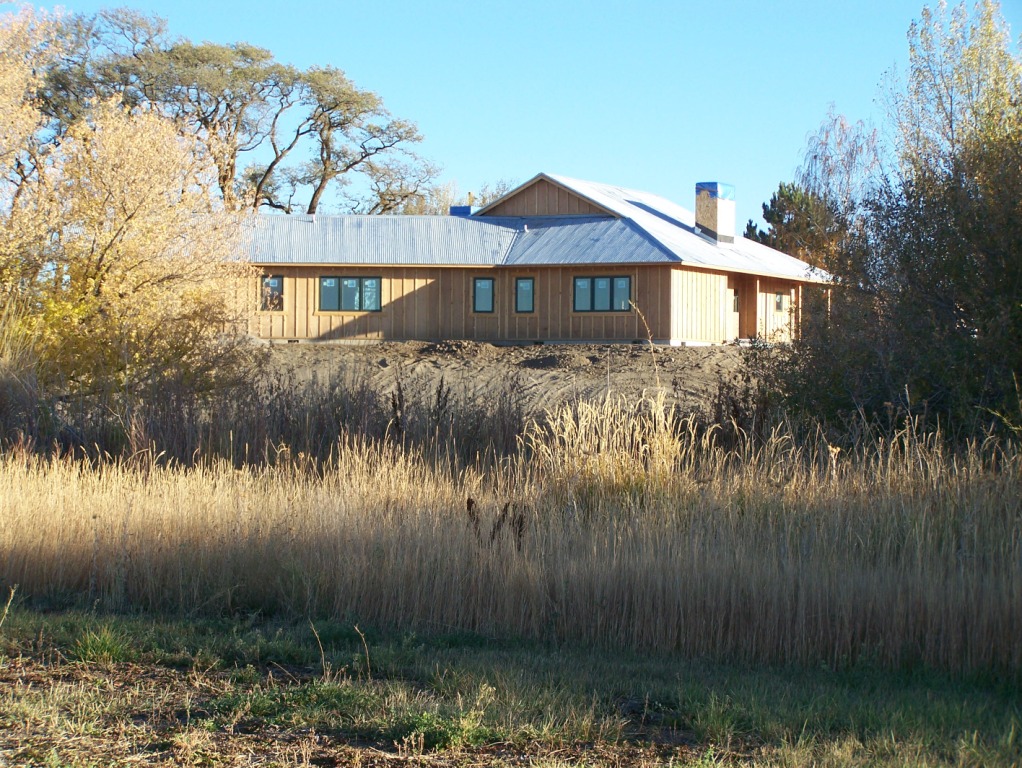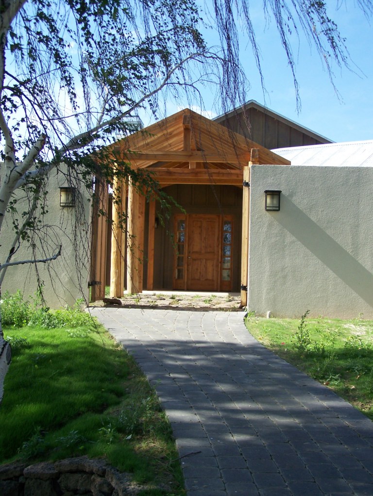 A retired couple from New York City wanted to create a new ranch home based on the traditional ranch style of 1930’s and 1940’s California architect Cliff May. The purpose of the house is for entertaining guests and to provide a place for their art collection and antiques. The design challenge was to create an intimate home in a vast sagebrush prairie environment with long vistas to mountain ranges. A u-shaped plan and an entry courtyard with an 8′-0″ concrete wall and multiple trellises helps to deflect the powerful wind and sun exposure and creates a sense of enclosure.